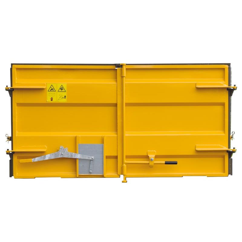 Porte arrière 2 battants tôlés H : 1 m, livrée avec 2 poteaux H : 1 m. Ouverture des portes en latéral. Porte de gauche équipée d'une trappe à grain. Portes équipées d'un système de blocage en position ouverte.